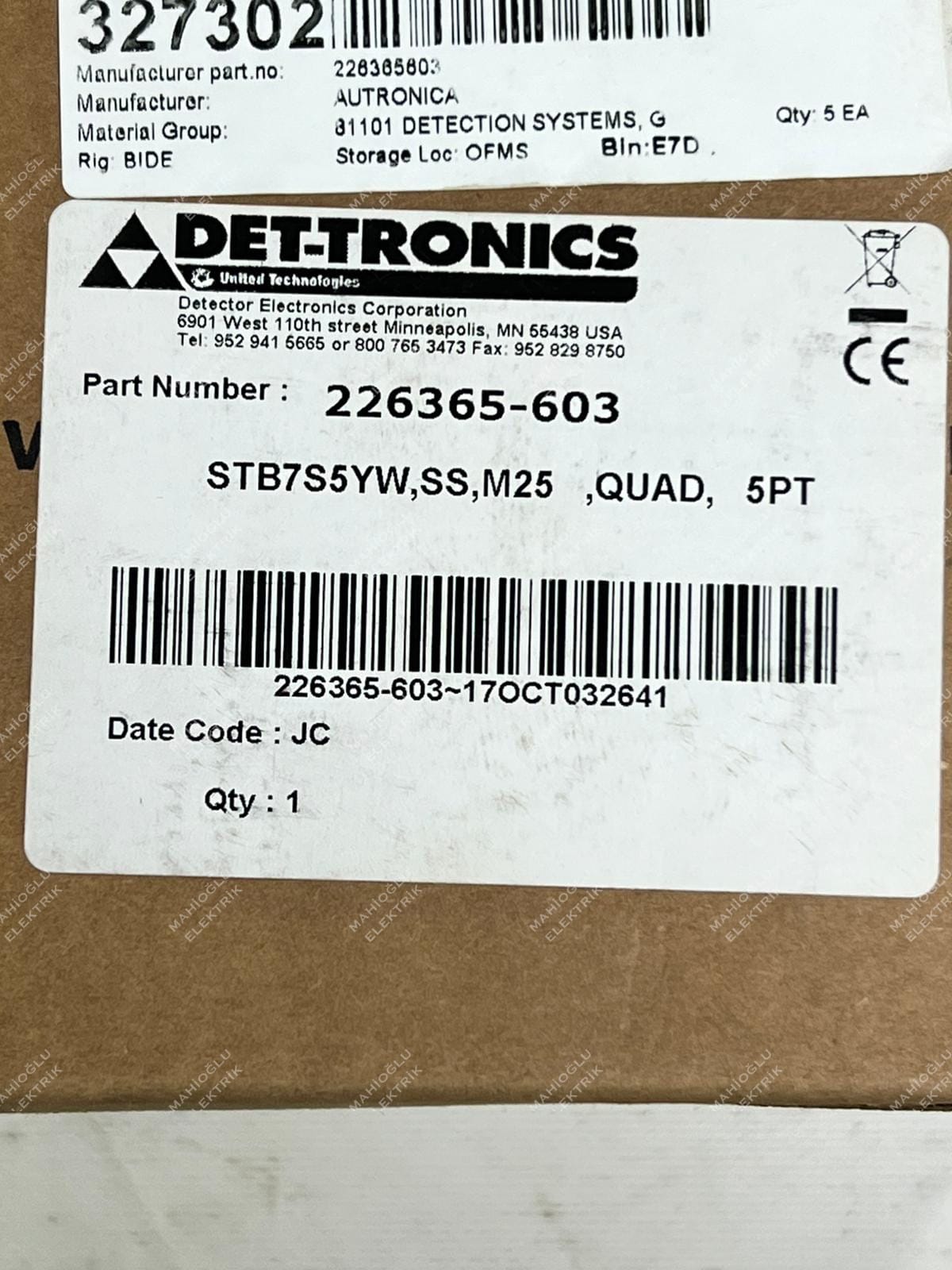 DET-TRONICS 226365-603 STB7S5YW SS M25 QUAD 5 PT