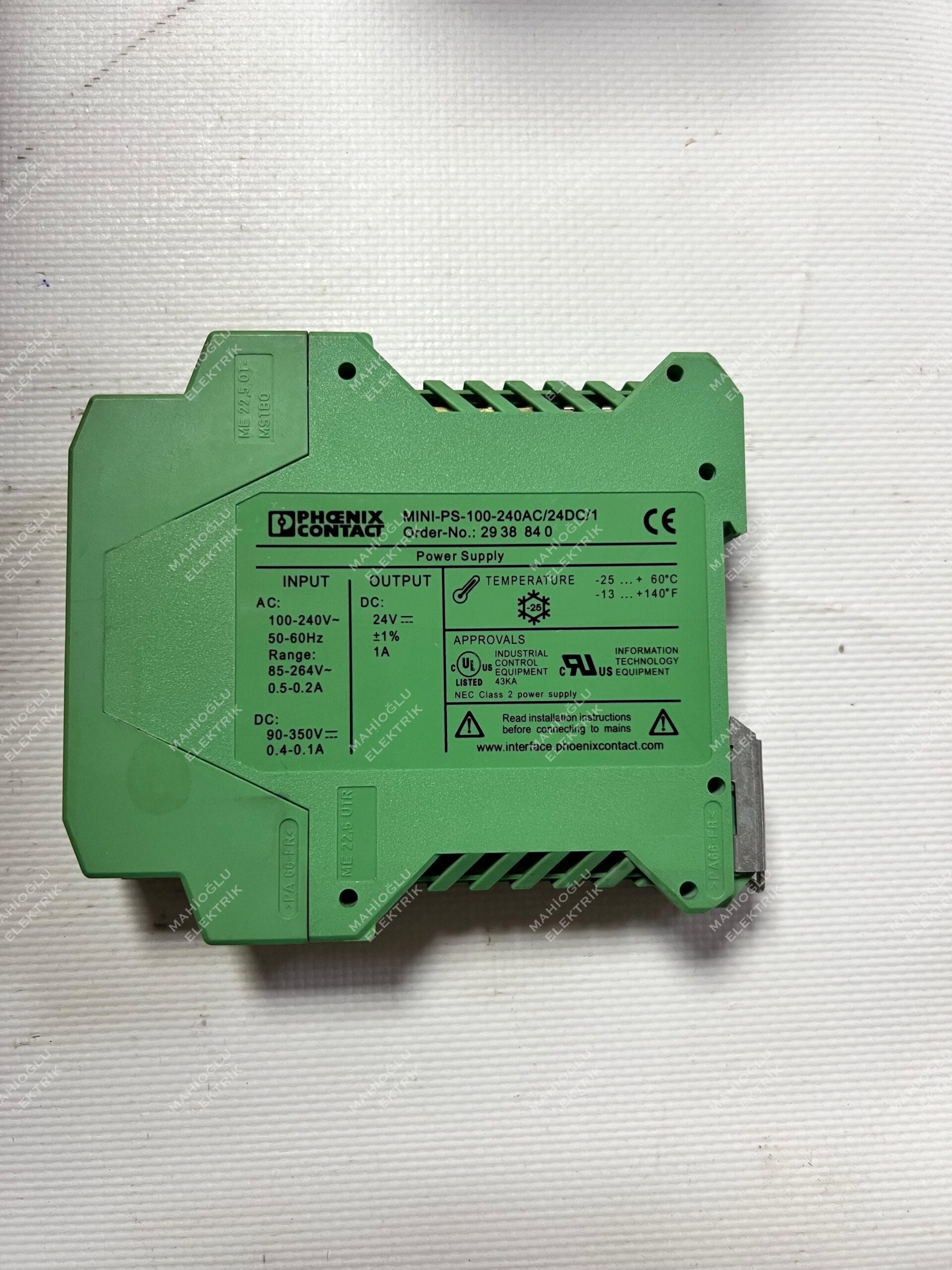 Etiket: 2938840, PHOENIX CONTACT, PHOENIX CONTACT MINI-PS-100-240AC-24DC-1, PHOENIX CONTACT MINI-PS-100-240AC-24DC-1 2938840